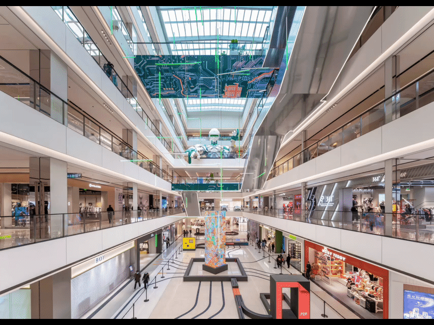 项目全体连系城市设想“密网、小地块”,打制“一街一巷一盒”的规划结构,以“落花如雨”为次要设想创意,以数字化笼统演绎南京市花,贯穿于各景不雅元素中,构成空间弹性、标准适宜、潮水取科技并存的城市动脉;正在贸易动线上,因地制宜打制双首层,从头定义空间的流线哲学;外立面将雨花的数字经济、潮水引领进行转译,采用科技质感材料,呈现出简练澎湃的设想言语;顶部渐变色温光幕灯,共同节日空气结果灵动多变,让全场空气充满魅力和个性。